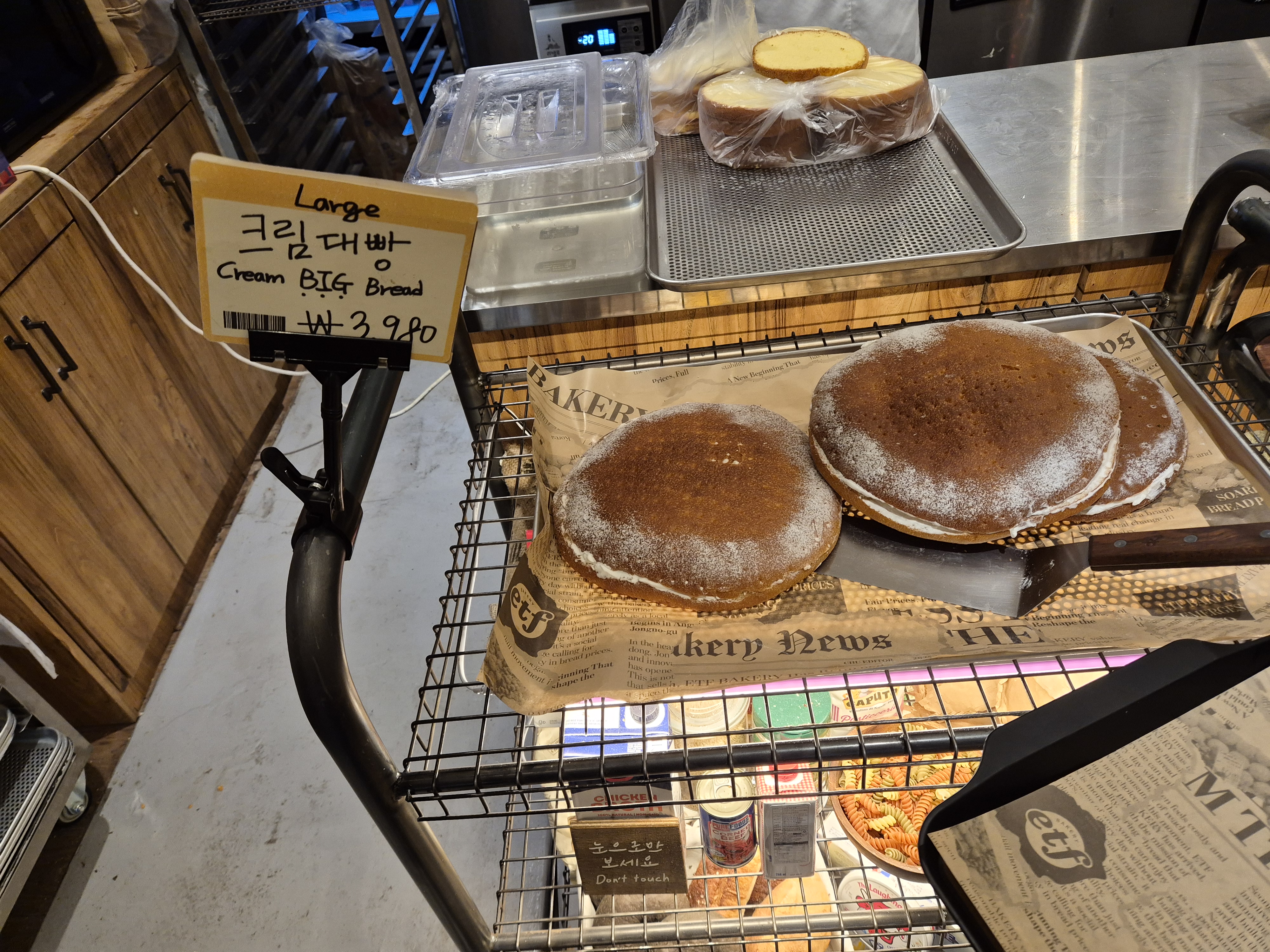 구매동선은 입구에서 나오는 빵들을 끝까지 쭉 훓고, 계산대로 간 뒤, 먹을 사람은 다시 식사공간으로 들어가서 빵을 먹게 되겠죠.