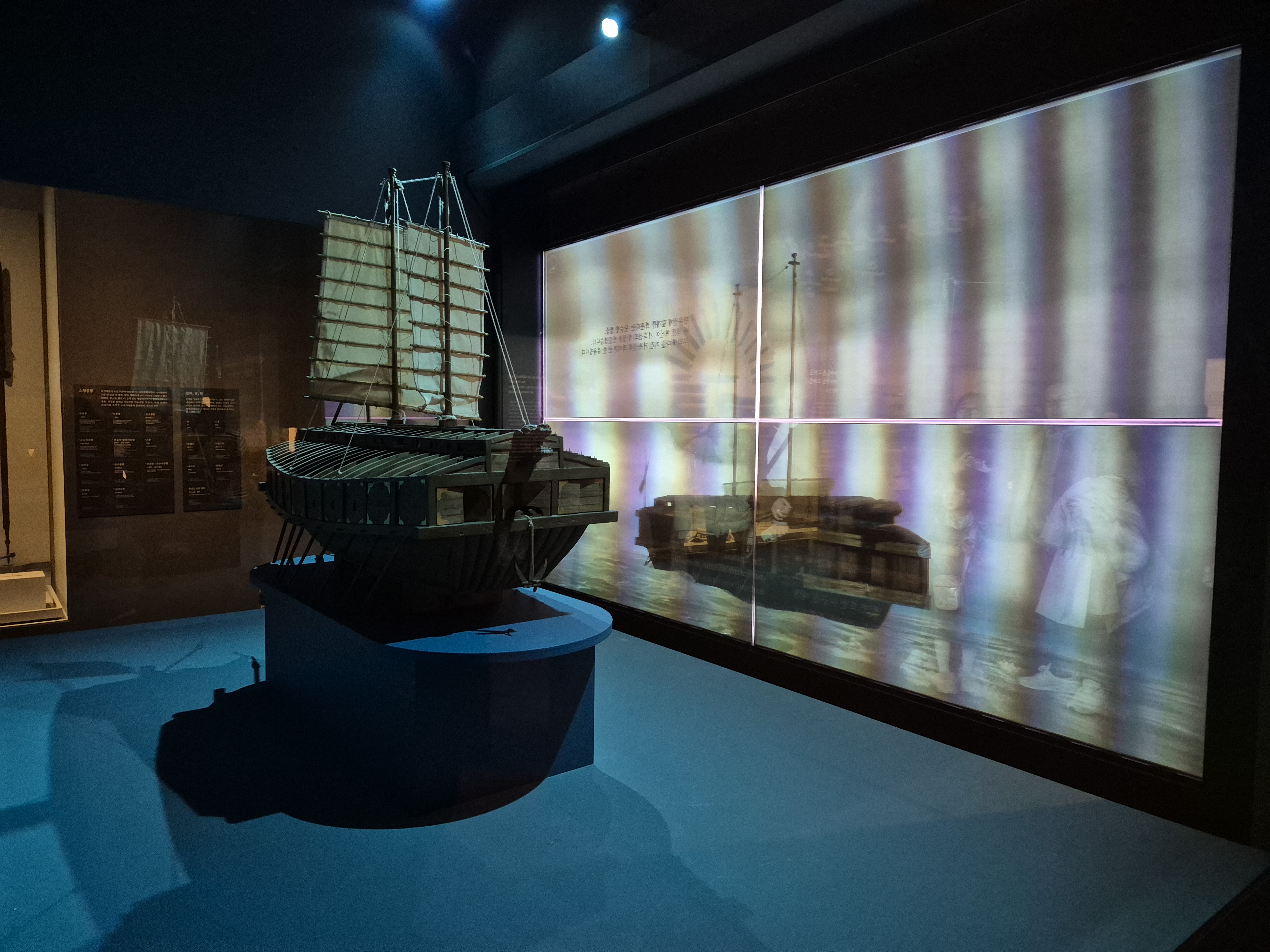 개인적으로 마음에 들었던 것은 화살을 천장과 벽면에 설치하고, 맞은편엔 영상, 주변에는 당시 쓰였던 무기들을 설치한 점입니다.