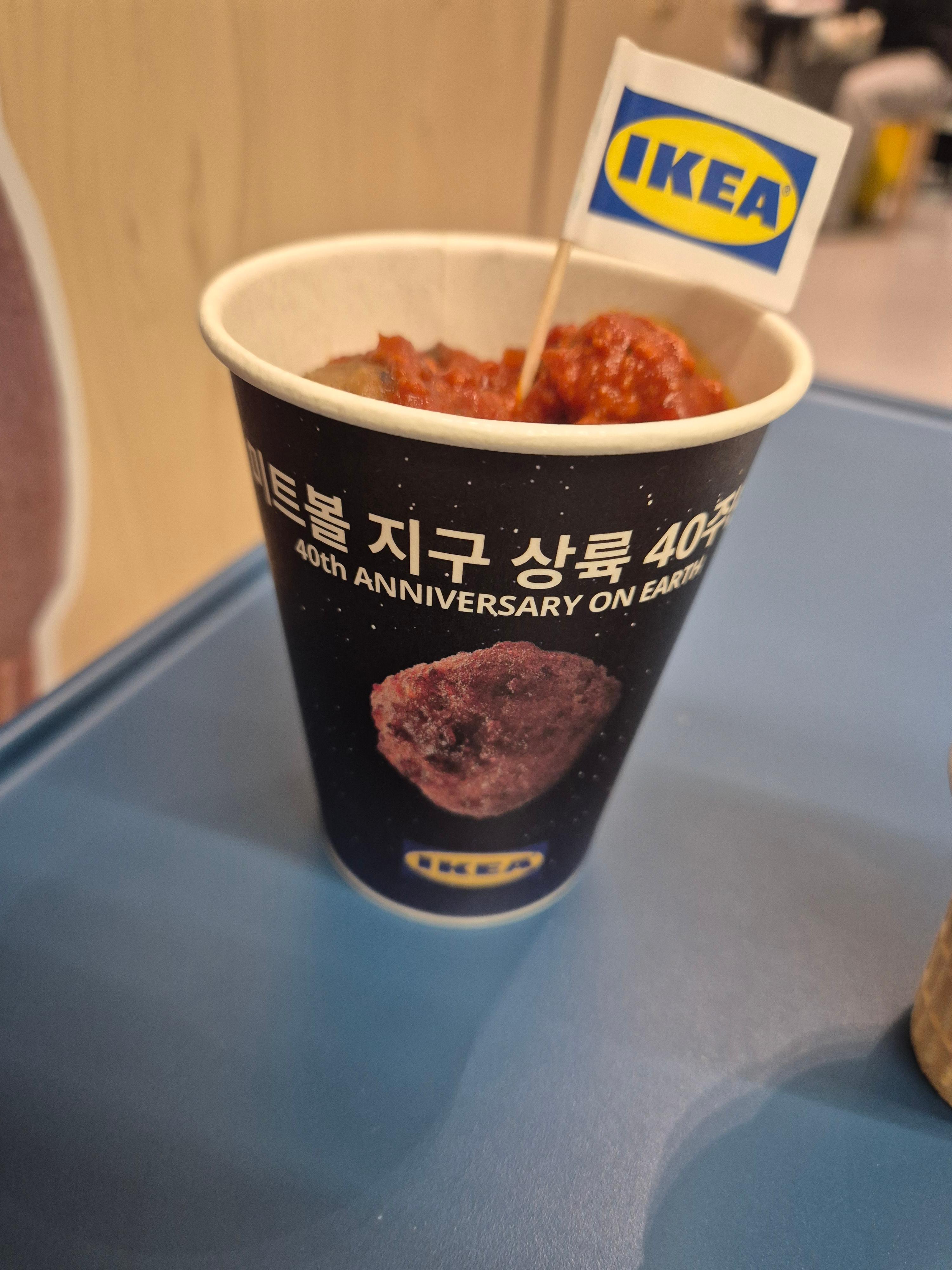 이케아에 미트볼이 들어온 지 40년이 되었다고 하더군요. 그리고 그 기념으로 한정 컵미트볼을 판매한다고 해서 가봤습니다.