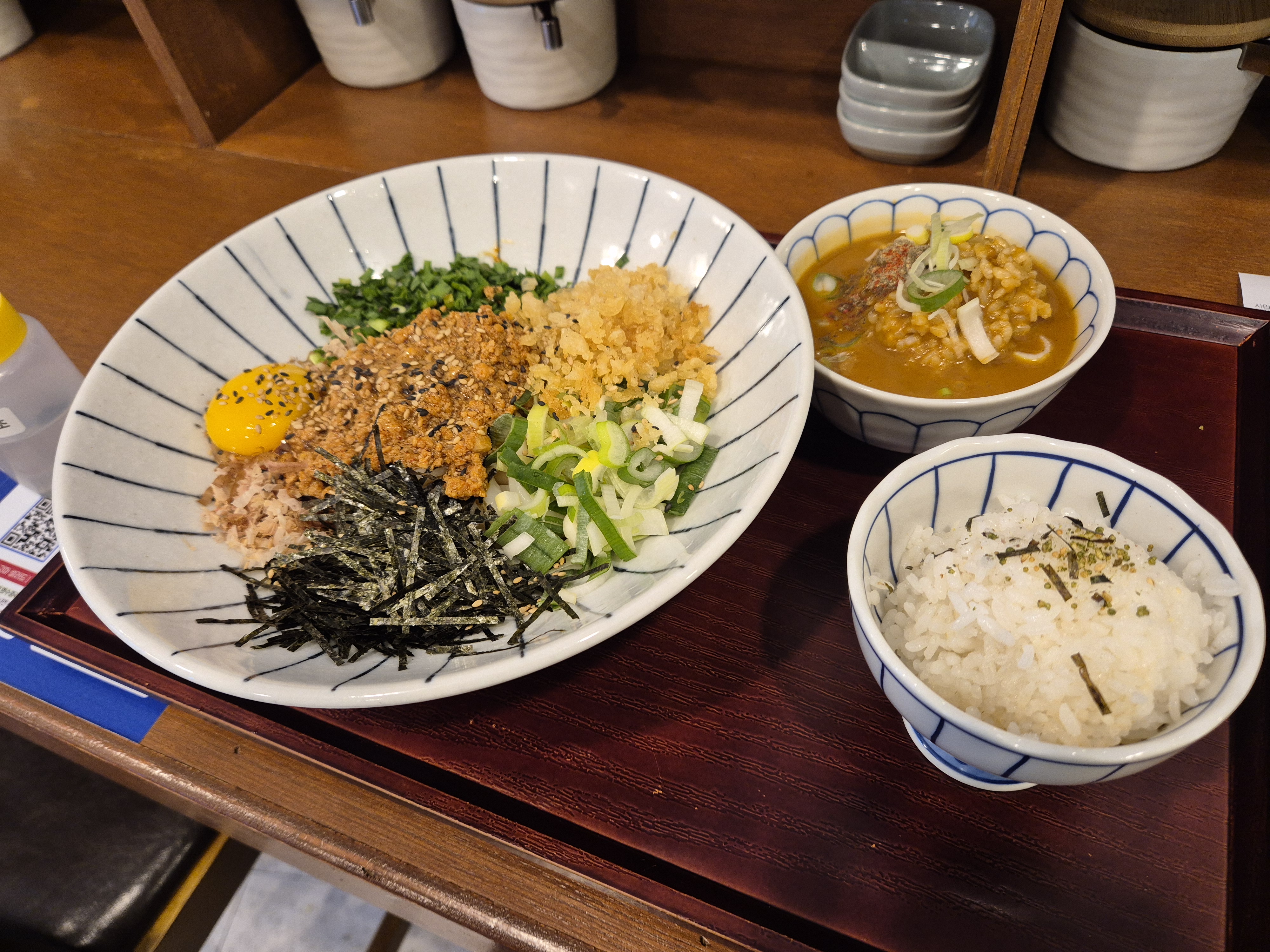 배가 고파 마제우동과 미니카레라이스, 고마셀러드를 시켰는데, 생각보다 양이 많아 놀랬습니다.