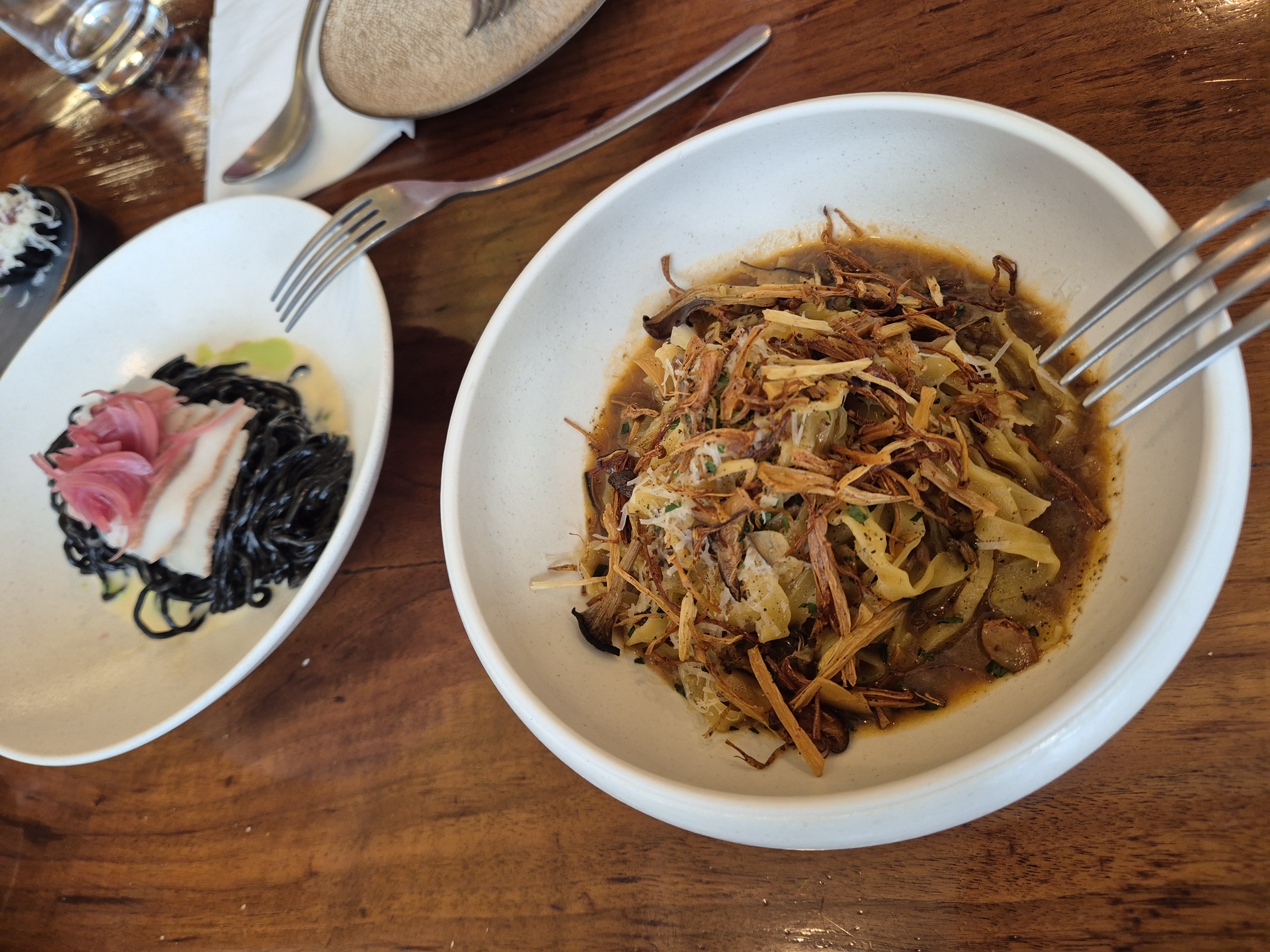 (왼쪽부터) 먹물 키타라 25,000 , 5가지 버섯 파스타,25,000