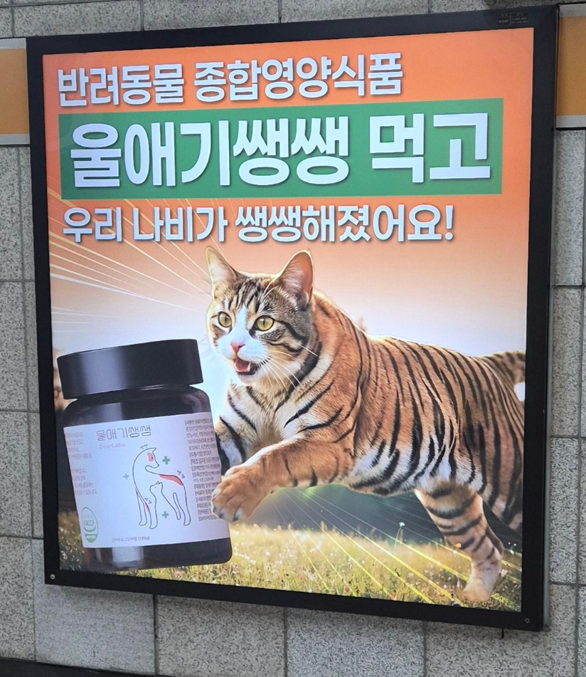 과하게 튼튼해진거 같은 강아지와 고양이의 이미지가 왠지 모르게 제품에 대한 믿음도 준다. 주변 강아지 고양이 집사들도 좋아할 것만 같다 싶다. 강아지 팔다리에 사람근육이 달리고, 고양이 몸이 호랑이로 바뀌면 어떠냐. 우리 주인님이 건강해진다고 하는데.
