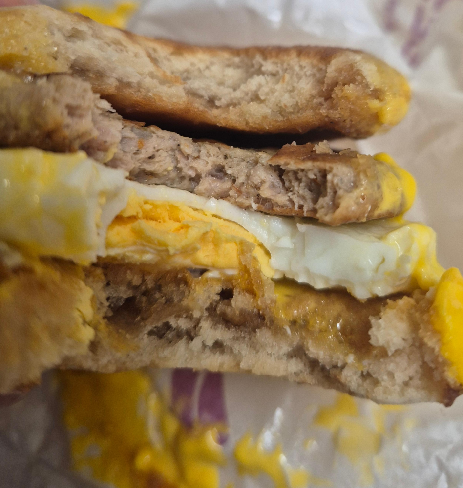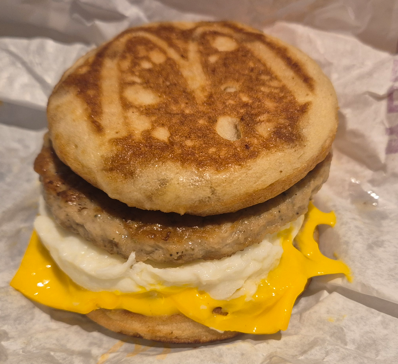 소시지 에그 맥그리들 (단품 가격 4,600원 버거앱 할인 자주 있음.)