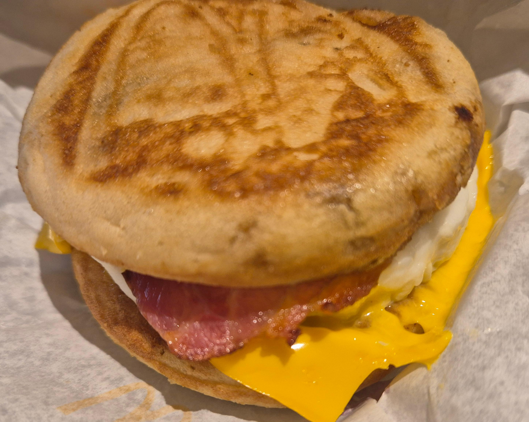 베이컨 에그 맥그리들입니다. (단품 가격 4,600원 버거앱 할인 자주 있음.)